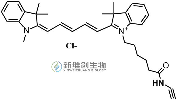 Cyanine5 alkyne contains alkyne and cy groups, which are used for click chemical labeling reactions. Alkyne is a commonly used biomarker group. Through copper catalyzed click chemical reactions, alkynes can form stable food chains with azides. The chemical reaction efficiency is high when clicking, even at low concentrations( μ M) It can also be quickly completed in the aqueous phase (or organic phase). The development of click chemical reaction technology is very mature, with various related reagents readily available and various biomarkers widely used.
